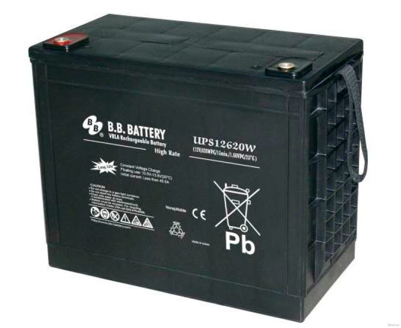 Аккумулятор BB Battery UPS 12620W работает в буферном и циклическом режимах, его можно устанавливать в любом положении, кроме монтажа на крышку. Ёмкость батареи 150 Ач, напряжение 12 В. B.B. Battery UPS 12620W обладает низким процентом саморазряда (< 3% за месяц) и довольно продолжительным сроком службы — 12 лет при соблюдении правил эксплуатации. BB Battery UPS 12620W использует технологию удержания электролита стекловолоконными сепараторами (AGM), а в корпус встроен пламегаситель. Аккумуляторная батарея BB Battery UPS 12620W имеет усовершенствованную конструкцию легированных кальцием электродов из особо чистого свинца, что обеспечивает продолжительный срок службы и улучшенные разрядные характеристики.