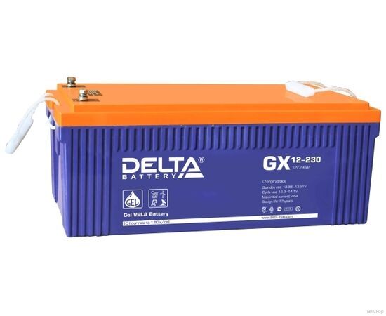 Необслуживаемый герметичный свинцово-кислотный аккумулятор Delta GX 12-230 изготовлена по технологии GEL (когда в качестве электролита в аккумуляторе используется загущенная серная кислота в виде геля) в корпусе из специального негорючего пластика. Аккумулятор устойчив к глубоким разрядам и показывает высокую температурную стабильность. Батарея может работать как в буферном, так и в циклическом режимах Батарея Delta GX 12-230 может использоваться для систем связи, альтернативной энергетике. Срок службы Delta GX 12-230 достигает 15 лет. Дата производства аккумулятора Delta GX 12 230 указана на крышке в виде символьного кода.