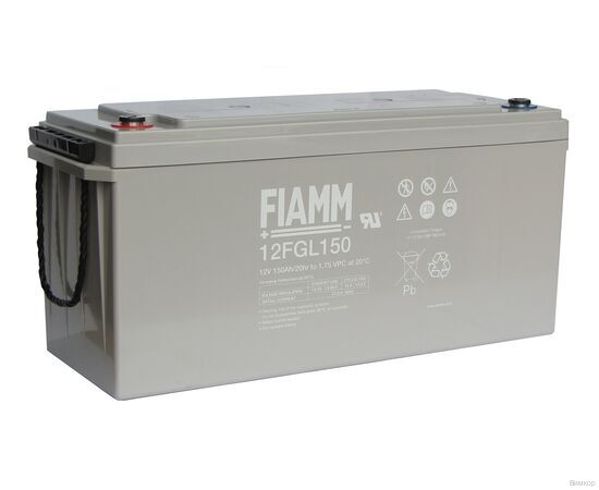 Свинцово-кислотный аккумулятор FIAMM 12FGL150 подходит для работы в любом режиме (буферный/циклический) и обладает высокими эксплуатационными характеристиками — напряжение 12 В, ёмкость 150 Ач, срок службы 10 лет. Данная батарея применяется в центрах обработки данных, источниках бесперебойного питания, охранно-пожарной сигнализации и альтернативной энергетике. Жидкий электролит удерживается неподвижно в мелкопористом стекловолокне (absorbed glass mat). Корпус выполнен в виде герметичного моноблока с припаянной крышкой, в ней для каждого элемента предусмотрен односторонний клапан избыточного давления.