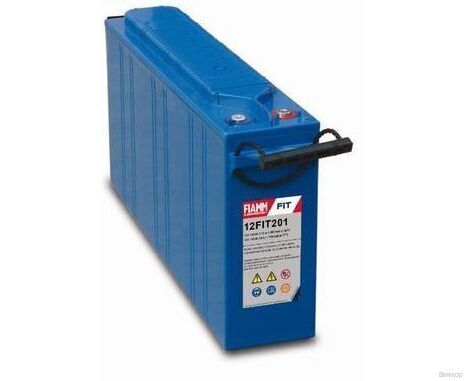 Фронт-терминальный аккумулятор FIAMM 12 FIT 201 (ёмкость 195 Ач, напряжение 12 В) производится для установки в 19 и 23 дюймовые стойки и шкафы. Прочный корпус выполнен из ABS-пластика и надёжно герметизирован. Внутри него поддерживается давление, необходимое для рекомбинации газов. Благодаря этому FIAMM 12 FIT 201 не требует долива воды на протяжении всего срока эксплуатации. На крышке предусмотрен односторонний VRLA клапан, сбрасывающий избыточное внутреннее давление. Фронтальное расположение клемм обеспечивает удобство монтажа и обслуживания большого количество аккумуляторов. Аккумулятор разработан с применением технологии AGM — жидкий электролит удерживается неподвижно в мелкопористых стекловолоконных сепараторах. Дата производства аккумулятора FIAMM 12 FIT 201 указана на крышке в виде символьного кода.