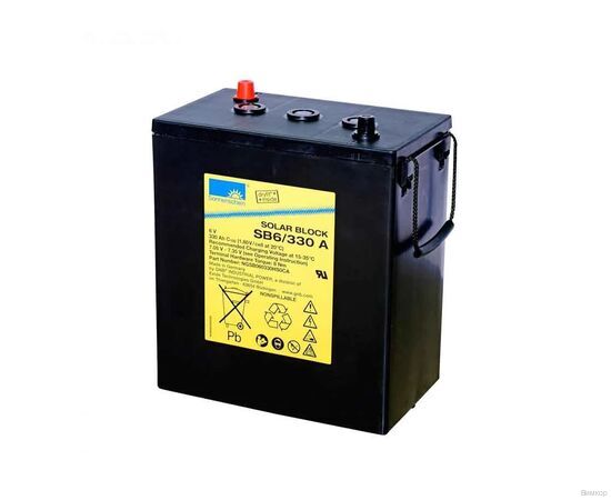 Свинцово-кислотный аккумулятор Sonnenschein Solar Block SB 6/330 А (ёмкость 330 Ач, напряжение 6 В) разработан для преобразования солнечной энергии, он также используется для небольших систем автономного электроснабжения, телекоммуникациях, источниках бесперебойного питания, нефтегазовой промышленности. Циклический ресурс составляет 800 циклов заряд-разряд. Корпус выполнен из прочного ABS-пластика и надёжно герметизирован. Внутри Sonnenschein Solar Block SB 6/330 А поддерживается давление, необходимое для рекомбинации газов, благодаря этому обслуживание батареи не требуется. Электролит находится в желеобразном состоянии (технология Dryfit), это повышает устойчивость аккумулятора к воздействию температур и глубоких разрядов. Дата производства аккумулятора Sonnenschein Solar Block SB 6/330 А указана на крышке в виде символьного кода.