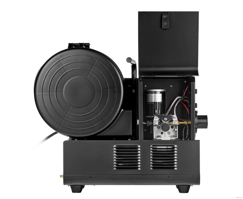 - Конструктивный плюс: При низкой индуктивности дуга более сконцентрированная и жесткая; наличие кнопки холостого прогона проволоки; встроенная розетка для подогревателя газа на 36 В; металлический механизм подачи проволоки; встроенная функция термозащиты с индикацией перегрева.
