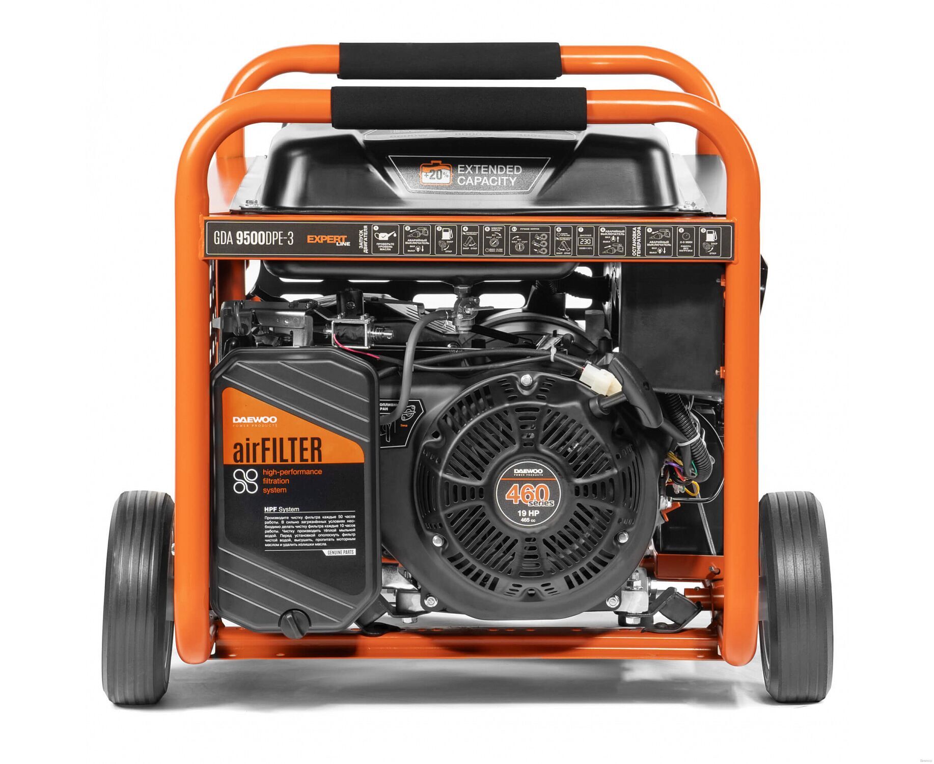 - Конструктивное исполнение: Бензиновый электрогенератор Daewoo Power Products GDA 9500DPE-3 используется в основном там, где отсутствует возможность подключения различных электроприборов к электросети (на даче, строительной площадке, в загородном доме и т.д.).Техническое обслуживание сводится к периодическому визуальному осмотру и контролю рабочих параметров.