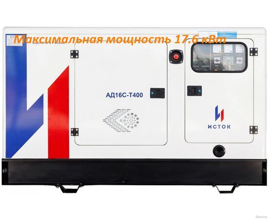 - Важная деталь: Дизельный генератор ИСТОК АД16С-Т400-РПМ15 - трехфазный дизельный генератор переменного тока максимальной мощностью 17,6 кВт предназначен для основного и резервного энергоснабжения коттеджей, малых промышленных и торговых предприятий, складов, объектов социального назначения.