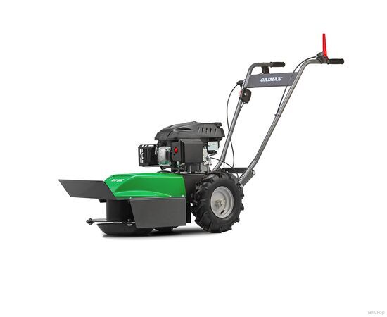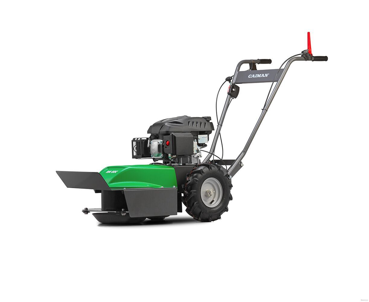 Косилка для высокой травы Caiman RM80C - идеальный инструмент для заготовки сена и расчистки неухоженных территорий. Машина сконструирована так, чтобы срезать травяной стебель только один раз (не измельчая его) и укладывать в ряд для обеспечения равномерного высыхания и облегчения последующего сбора. Четырехтактный бензиновый двигатель Caiman Green Engine 225CC. Одноцилиндровый мотор с вертикальным расположением коленвала и чугунной гильзой цилиндра изготовлен по технологии OHV (верхнее расположение клапанов). Конструкция мотора рассчитана на длительные ежедневные нагрузки профессиональной техники. 4 плавающих ножа, закрепленные на стальном диске. Такая система идеально подходит для стрижи высокой травы и кустарника. При попадании ножа на камень или любой твердый предмет, они складываются, что позволяет снизить ударную нагрузку на режущий механизм. Ременной привод ножей сохраняет коленвал двигателя после удара работающего ножа о посторонний предмет (камень, арматура) и тем самым увеличивает срок службы двигателя. Два больших пневмоколеса c сельскохозяйственным протектором дают возможность преодолевать любые препятствия и неровности. Рукоятка имеет регулировку по высоте, а также все необходимые элементы для управления машиной, которые находятся прямо под рукой оператора и легко доступны. Угол разворота 360 градусов делает машину чрезвычайно маневренной. Жесткая стальная рама, металлический защитный кожух способны выдержать ежедневные большие нагрузки. Система отключения ножей обеспечивает моментальную остановку работы режущих элементов. Удобно расположена на руле.