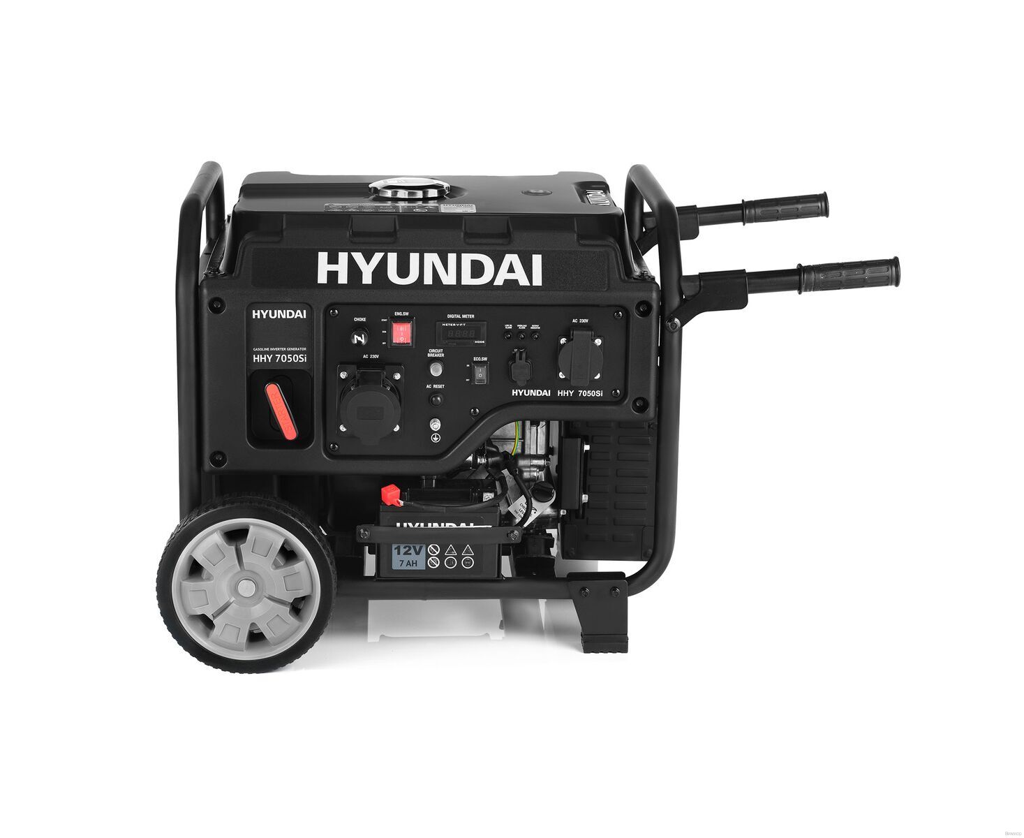 - Значимый факт: Генератор бензиновый инверторный Hyundai HHY 7050Si обладает такими ми как: выдает ток стабильной частоты и напряжения, что положительно влияет на работу дорогостоящих точных устройств, обладает способностью экономить топливо, расходуя его ровно столько, сколько необходимо для поддержания жизнедеятельности запитанных потребителей.