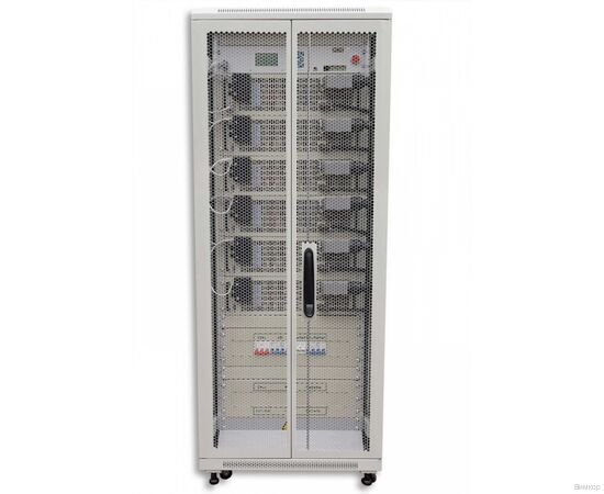 - Конструктивное исполнение: Двойное преобразование со стабилизацией выходного напряжения и частоты; синусоидальная форма выходного напряжения; высокая стойкость к перегрузкам и защита от короткого замыкания в нагрузке; «холодный» старт; автотестирование, контроль за состоянием и защита от полного разряда АБ; автоматический и ручной переключатель резерва (байпас); технический байпас; возможность работы в экономном режиме (для питания нагрузки, не критичной к форме сетевого напряжения, для снижения потерь электроэнергии от режима двойного преобразования); высокое значение допустимого коэффициента амплитуды (крест-фактор) выходного тока при работе ИБП на нелинейную нагрузку; добавление мощности в условиях ограничения разрешенной мощности электросети; добавление мощности при совместной работе ИБП с бензиновыми и дизель-генераторными установками (БГУ и ДГУ); симметрирование нагрузки по фазам входной электросети; ЖК-индикация параметров и режимов работы, звуковая индикация (сигналы тревоги) при перегрузке, неисправности, высокой температуре, недопустимом отклонении параметров сети, недопустимом разряде АБ; ethernet, USB, SMS-оповещения (опционально); возможность контроля, управления и мониторинга состояния ИБП и сети через интерфейсы RS-232, USB, RS-485 посредством специализированного программного обеспечения; дистанционная сигнализация (сухие контакты).Комплектация:.