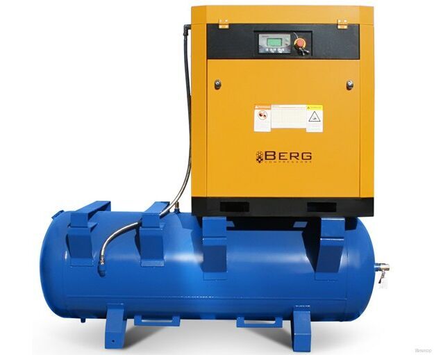 - Конструктивный плюс: Винтовых компрессоров Berg: высокая энергоэффективность; широкий выбор диапазонов давлений; высокая надежность даже в суровых климатических условиях; низкий уровень шума и экологическая безопасность; компактность; простота обслуживания и эксплуатации; увеличенные межсервисные интервалы; длительный срок службы подшипников; высокое качество сжатого воздуха; трехступенчатая сепарация воздушно-масляной смеси, содержание масла не более 3ppm; отсутствие вибраций и совершенство конструкции, позволяющее устанавливать компрессоры BERG на ровный пол (специальный фундамент не требуется); электрика Schneider Electric, Siemens, обеспечивает длительную, стабильную и надежную работу; радиатор компрессора, изготовленный из алюминия, снижает температуру сжатого воздуха (не более +12?С по сравнению с температурой на входе).