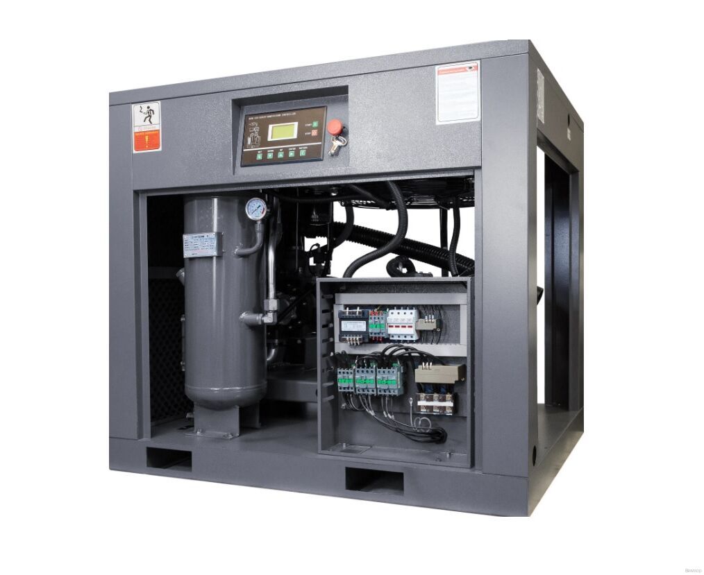 - Инженерное решение: Схема сборки агрегата предусматривает установку в металлическом корпусе с шумопоглощающим покрытием электродвигателя мощностью 18,5 кВт, через муфту сопряженного с одноступенчатым винтовым блоком.