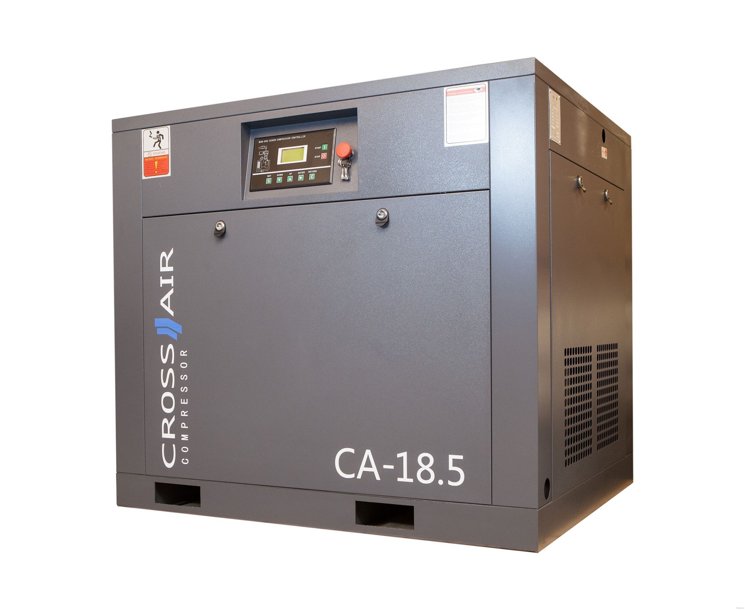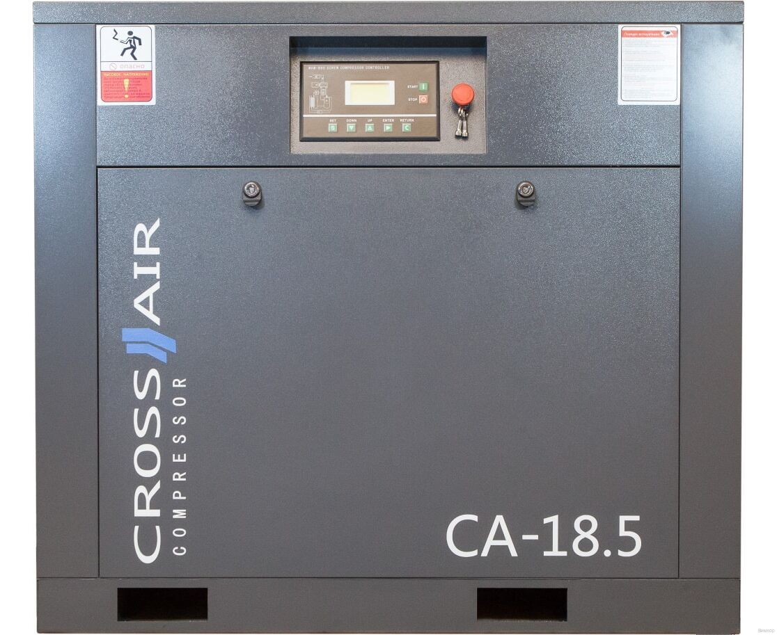 - Отличительная черта: При потреблении в минуту 2,5 кубометров сжатого воздуха давлением 8 бар в повторно-кратковременном режиме в качестве нагнетателя на промышленных предприятиях и в мастерских рекомендуем использовать винтовой компрессор CrossAir CA18.5-8GA-F.
