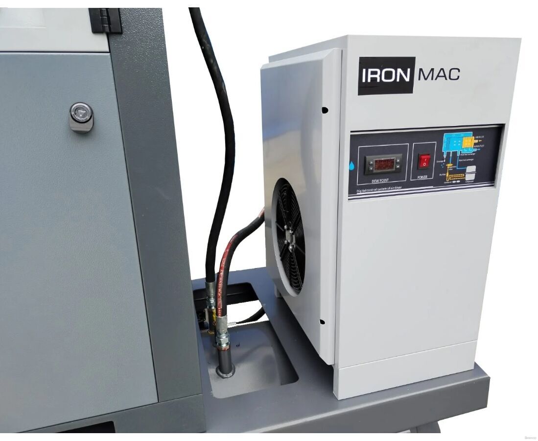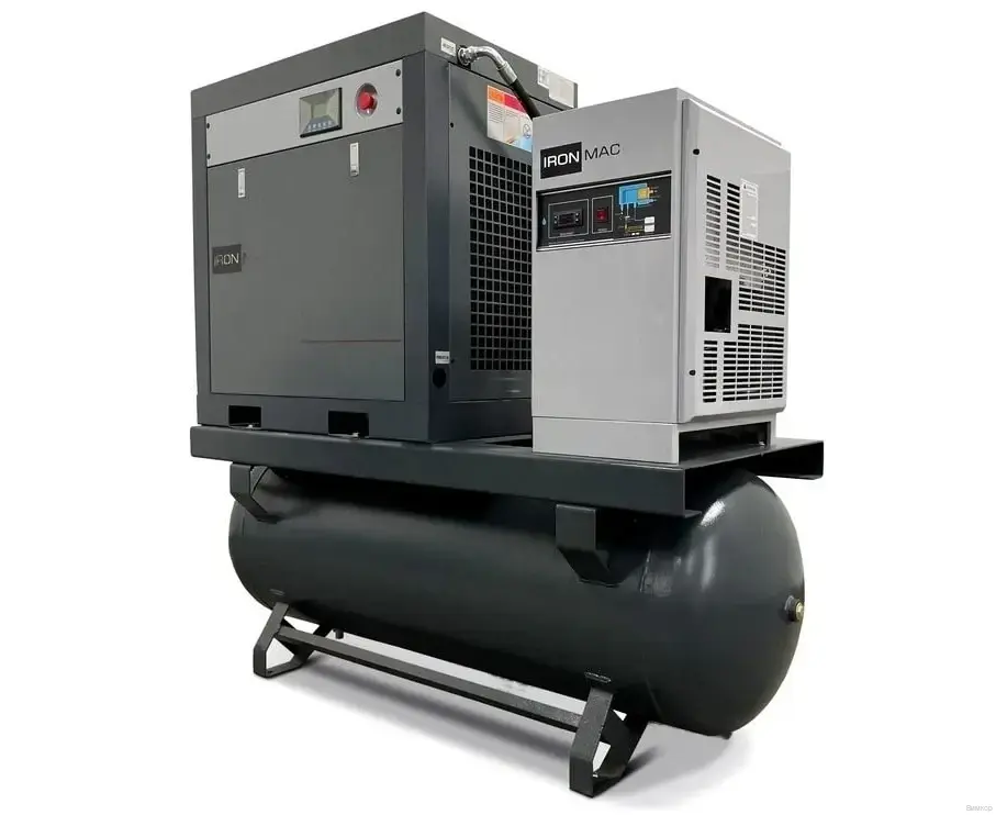 - Техническая спецификация: Винтовой компрессор IRONMAC IC B DF 500L – высокоэффективное одноступенчатое оборудование с масляным впрыском и качественным винтовым сжатием.