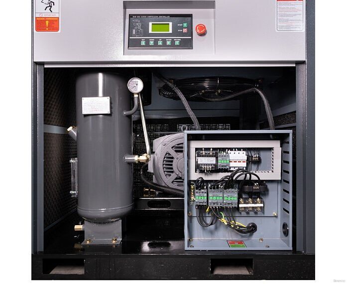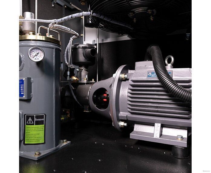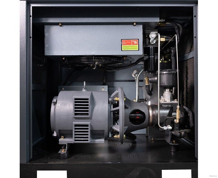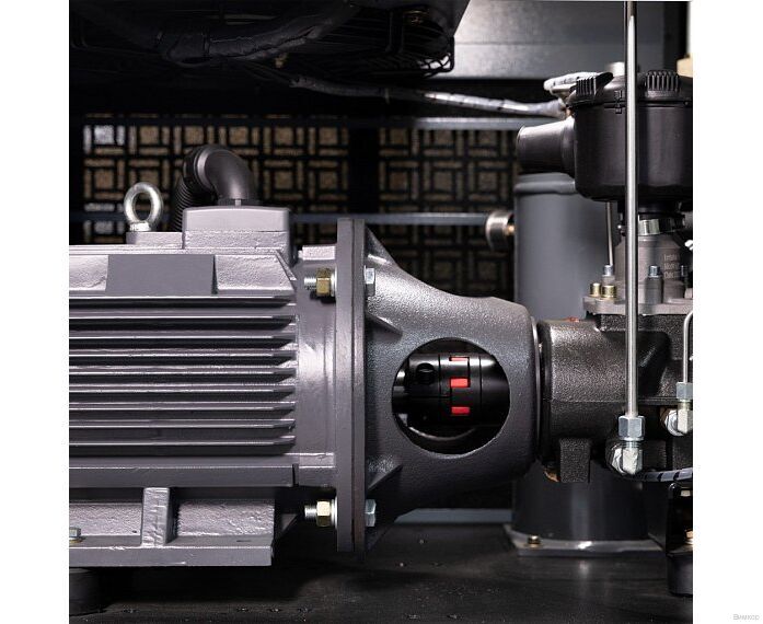 - Конструктивное исполнение: Клиновые ремни передают до 97% КПД с электродвигателя на винтовой блок, а также способствуют исключению вибрационных нагрузок во время пуска компрессора.