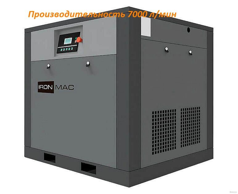 - Значимый факт: Благодаря современным решениям, компрессор IRONMAC получил: КПД 98.9%; плавный пуск; низкий уровень шума 64 дБ; частотный преобразователь Folinn; интуитивный и русифицированный контроллер.