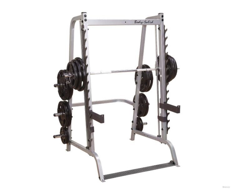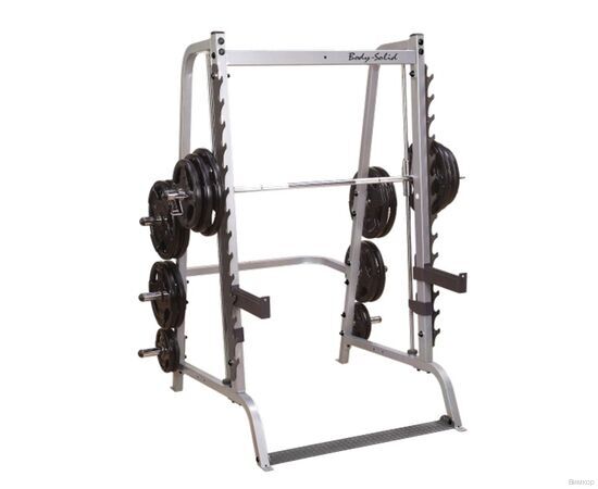 Машина Смита Body Solid GS348 с наклоном рамы 7 градусов создает естественность движений при выполнении упражнений для верхней и нижней части тела. Мощная цельносварная станина из профиля 50*76 мм. обеспечивает максимальную безопасность, прочность и устойчивость. Благодаря 20 точкам вертикальной фиксации штанги нагрузку можно отрегулировать под любого атлета и при необходимости надежно зафиксировать в любой момент движения. Штанга весом 11 кг. мягко и плавно перемещается по хромированным направляющим. Чрезвычайно прочные регулируемые предохранительные приспособления пригодны как для работы в тренажере Смита, так и для упражнений со свободной штангой. Удобный стеллаж для дисков имеет 14 позиций.