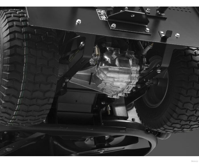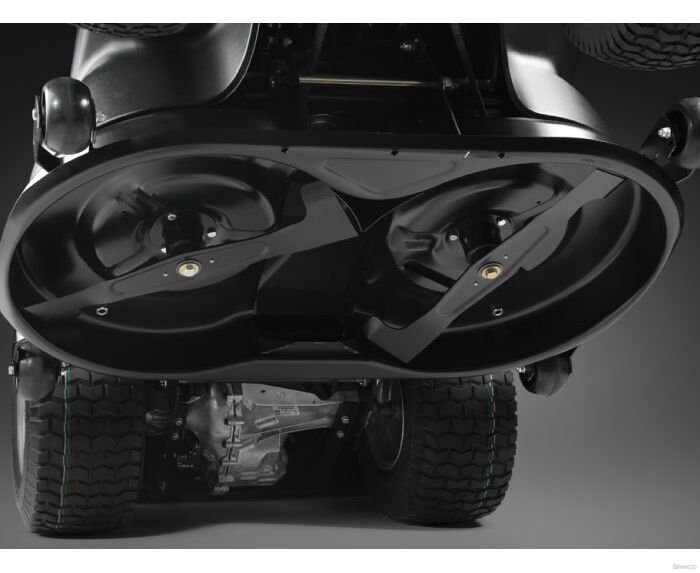 - Важная деталь: Ножи и специальная форма режущей деки создают мощный воздушный поток, который позволяет эффективно скашивать высокую и мокрую траву и забрасывать ее в травосборник, максимально полно используя его объем.