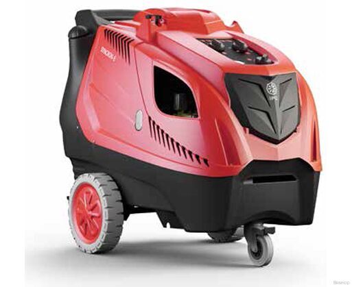 - Отличительная черта: Оснащение и встроенная система смягчения воды; подача моющего средства под высоким давлением; электрический нагрев воды; защита от сухого хода; счетчик рабочего времени; система предотвращения перелива воды; низкое напряжение панели управления для максимальной безопасности пользователя; кривошипно-шатунный насос высокого давления с керамическими поршнями и латунной головкой; бойлер из нержавеющей стали со стальным двойным змеевиком; резервуар для моющего средства встроен в тележку и оборудован сливным отверстием; тележка имеет ручки для подъема и рукоятку для удобной транспортировки.