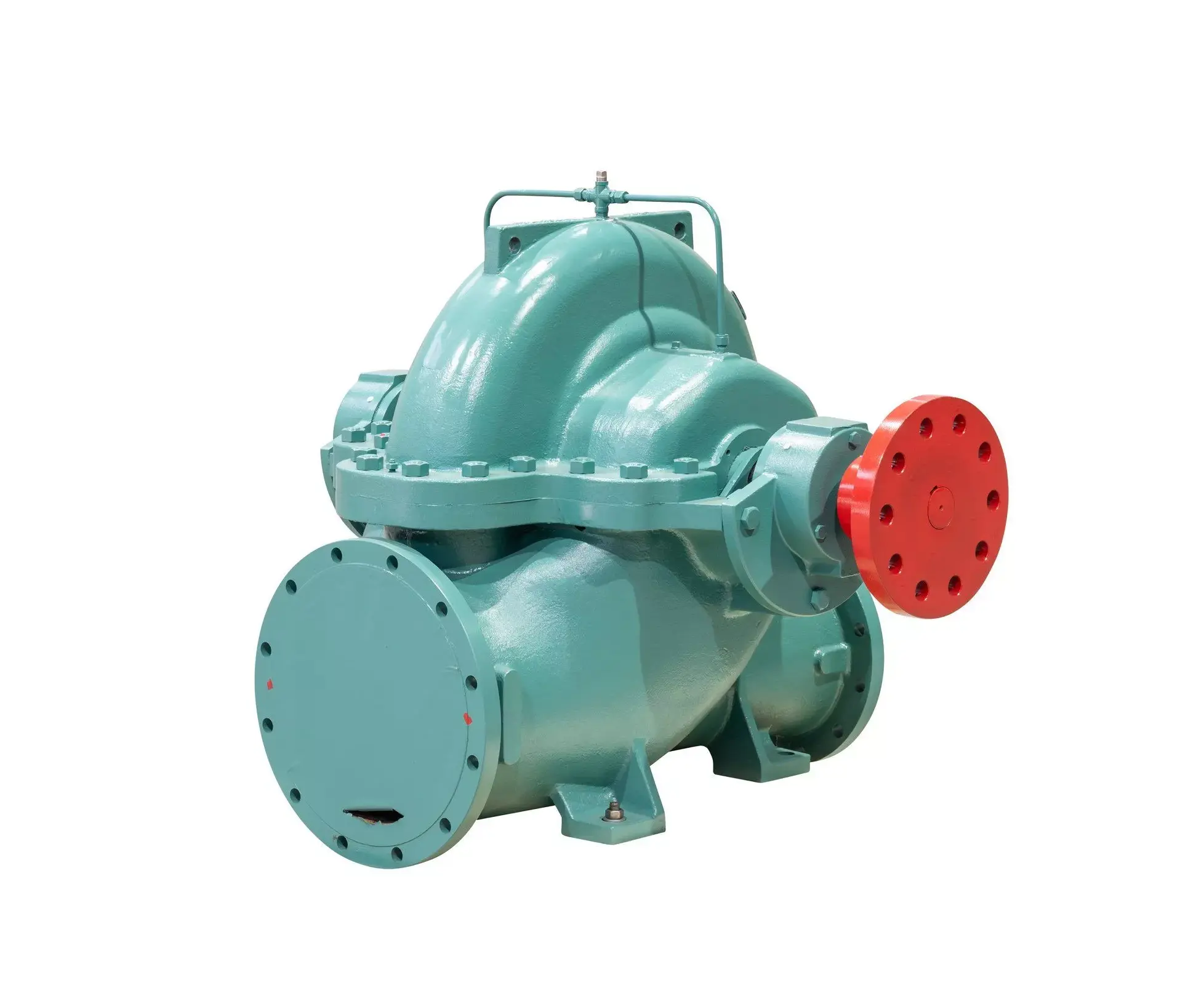 Насос ESQ типа Д – центробежный двустороннего входа, горизонтальный одноступенчатый с двусторонним полуспиральным подводом жидкости к рабочему колесу двустороннего входа и спиральным отводом. Насос центробежный двустороннего входа типа Д и агрегаты электронасосные на его основе, предназначены для перекачивания воды и химически активных нетоксичных жидкостей плотностью до 1100кг/м3, вязкостью до 60x10-6 м2/с (60сСт), температурой от 233К до 368К (от минус 40 до плюс 95°С), не содержащих твердых включений по массе более 0,05%, размеру более 0,2мм и микротвердостью более 6,5 ГПа (650кгс/мм2). Принцип действия насоса заключается в преобразовании механической энергии привода в гидравлическую энергию жидкости за счет гидродинамического воздействия лопастной системы рабочего колеса, подвода и отвода. Корпус насоса представляет собой чугунную или стальную отливку, которая имеет разъем в горизонтальной плоскости, проходящей через ось ротора.