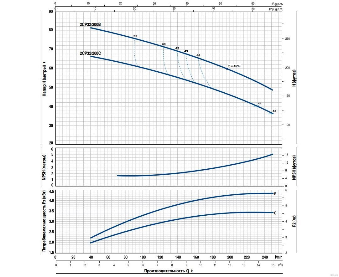 - Значимый факт: Из-за своих конструктивных особенностей центробежный насос Pedrollo 2CP 32/200B рекомендуется использовать в бытовых, сельскохозяйственных и промышленных применений.