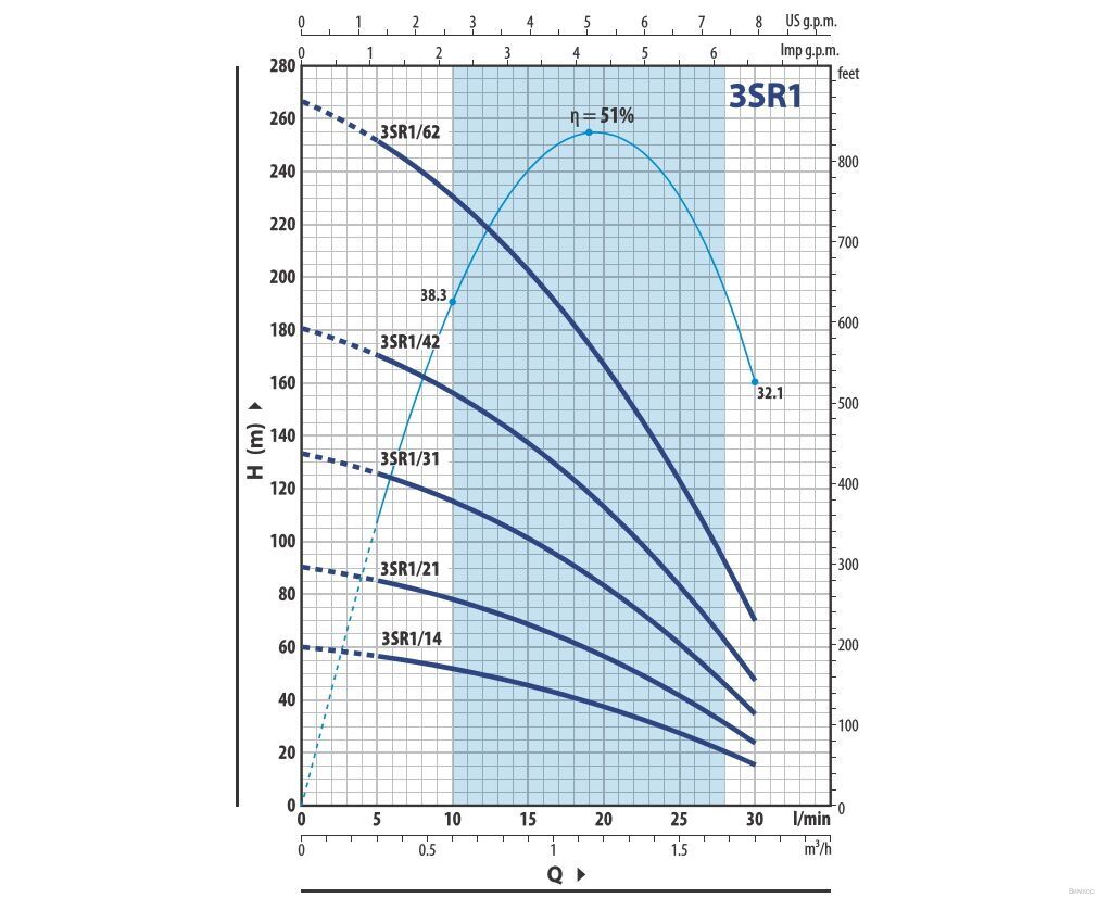 Характеристики Насос Pedrollo 3SR 1/62 P (4931162PLA)