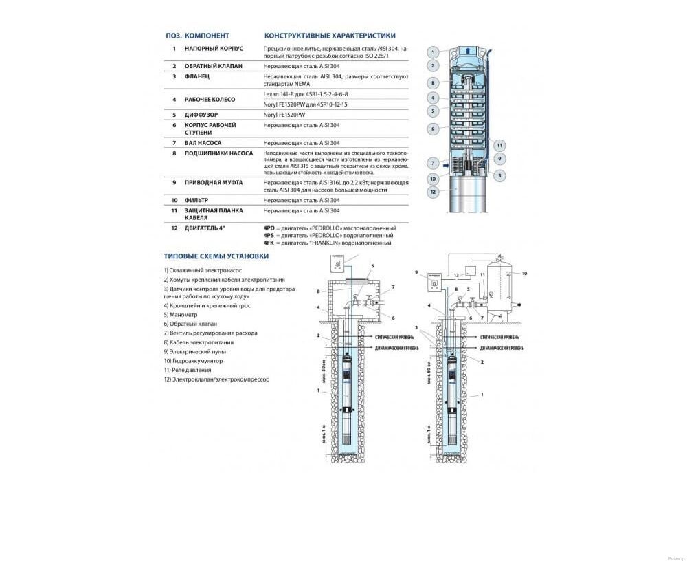 - Тип погружного насоса: скважинный.