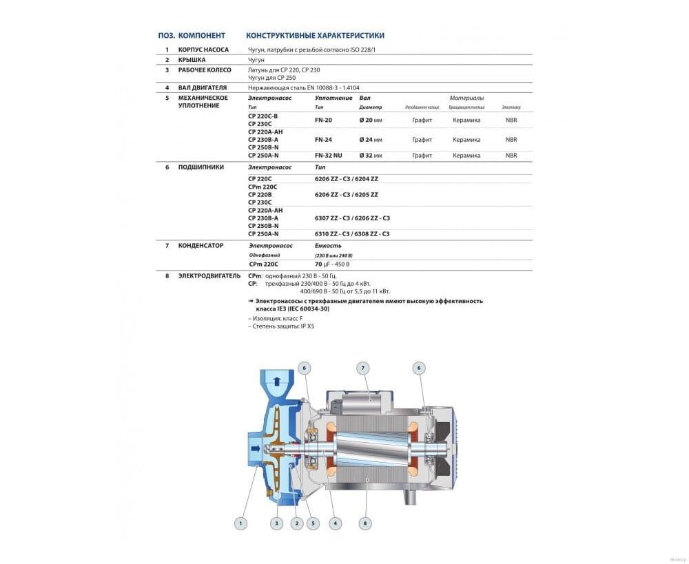 Характеристики Насос Pedrollo CP 220B (44CT216B1A)