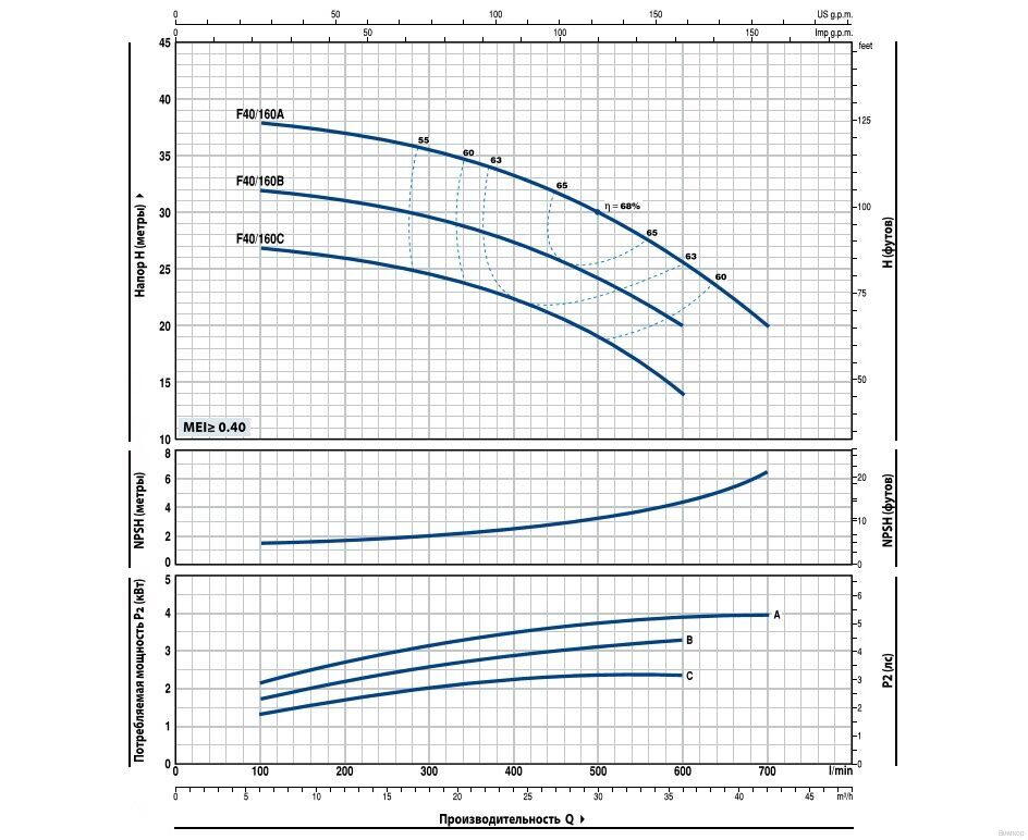 Характеристики Насос Pedrollo F 40/160A (4FN40163AA)