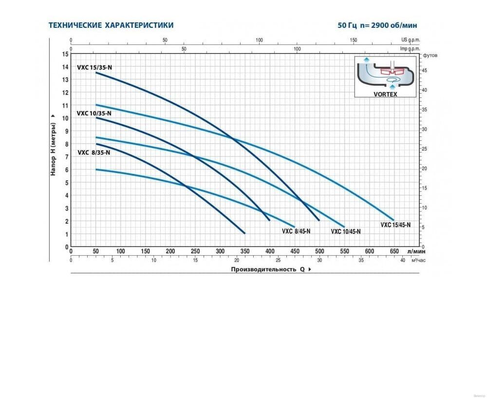 - Эксплуатационное преимущество: Ключевые характеристики: Эксплуатационные ограничения: глубина погружения до 10 м; максимальная температура жидкости до +40 °C; прохождение твердых взвешенных частиц – до 40 мм для моделей VXC /35-N, до 50 мм для моделей VXC /45-N; минимальная глубина погружения для продолжительного режима работы – 280 мм для VXC /35-N, 300 мм для VXC /45-N.