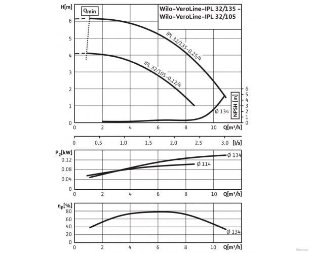 Характеристики Насос Wilo IPL 32/135-0.25/4 (2150343)