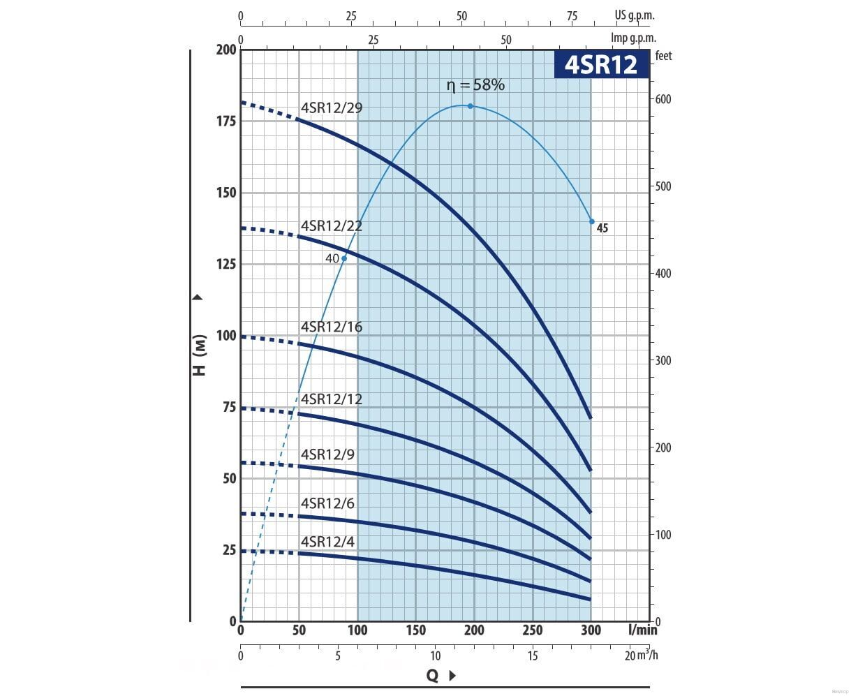 Характеристики Насос Pedrollo 4SR 12/ 9 P (4941209WLA)