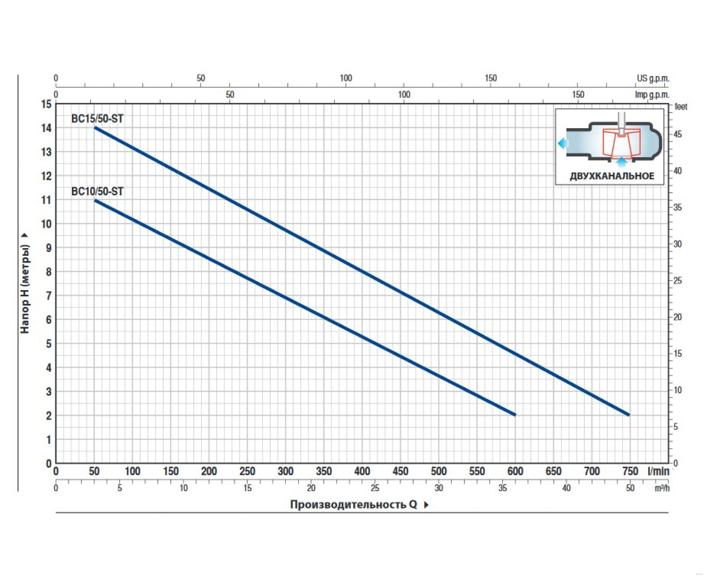 - Конструктивный плюс: Канализационный погружной насос BC 10/50-ST от Pedrollo приобретают для отвода воды с высоким содержанием ила, нечистот, сточных стоков и т.д.