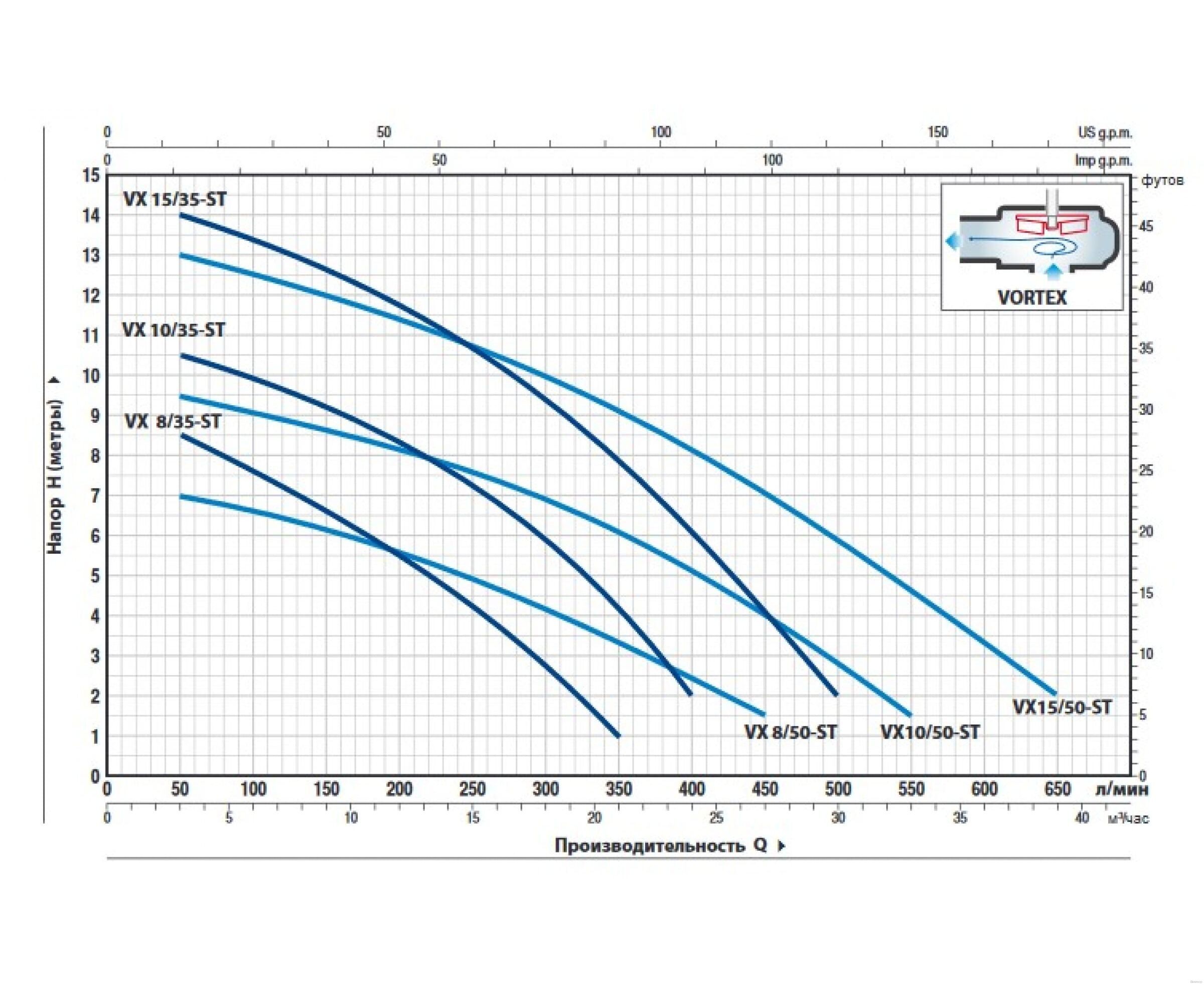 - Важное дополнение: Электронасосы Pedrollo VXm 15/35 способны работать при температуре жидкости до +40°С и наличии твердых частиц до 50 мм, при этом производительность достигает 30м?/ч, а максимальный напор возможен до 14 м.