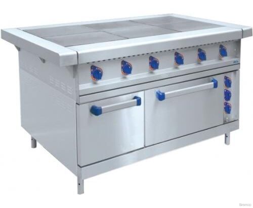 конфорка - чугунная; размер конфорок - 295x417 мм; оснащение - духовой шкаф; темпер.режим - 480 °С