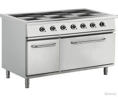 6 чугунных разборных конфорок - 285х415 мм; духовой шкаф; противни из углеродистой стали 525х480х30 мм – 3 шт