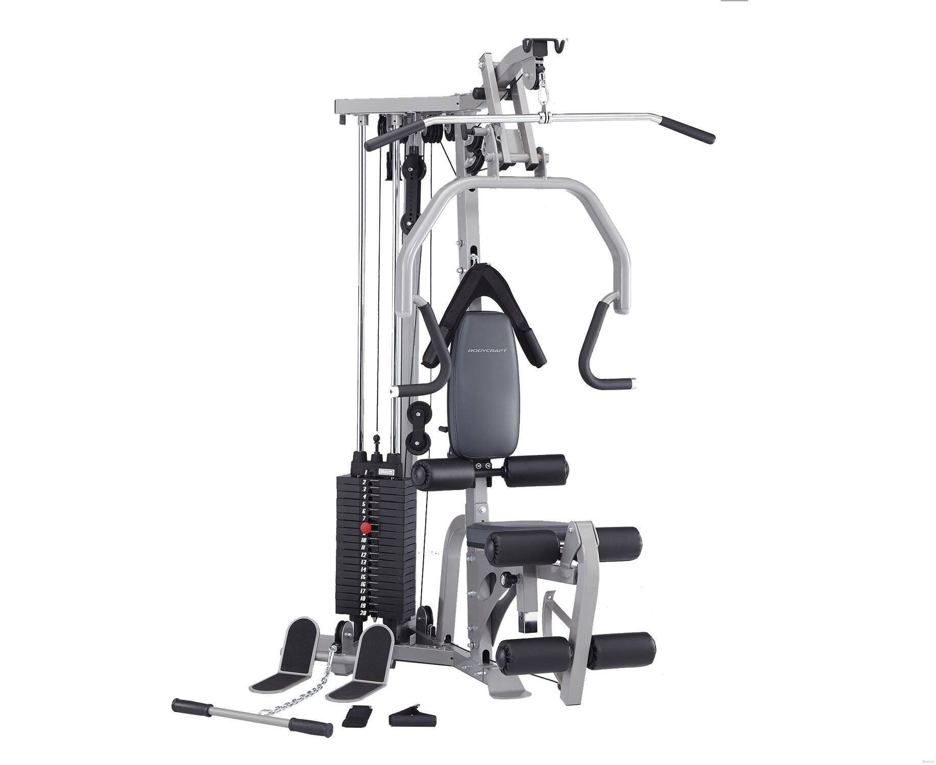Силовой комплекс BodyCraft GL Gym (868F) признан лучшим универсальным домашним тренажером! Силовой тренажер BodyCraft GL GYM предназначен для выполнения множества упражнений: жим лежа, упражнения для пресса, жим от плеча, среднюю и нижнюю тягу, упражнения для ног. Ультра компактная угловая конструкция. Быстрая и удобная регулировка нагрузки. Регулируемые подушки спины и сиденья. Усовершенствованный дизайн. Анатомическая спинка. Двойная обивка из высококачественного винила. Прочность троса на разрыв более 1 тонны. Регулируемое сиденье и спинка сиденья (вверх/вниз/вперед). Весовой стек - 90кг.