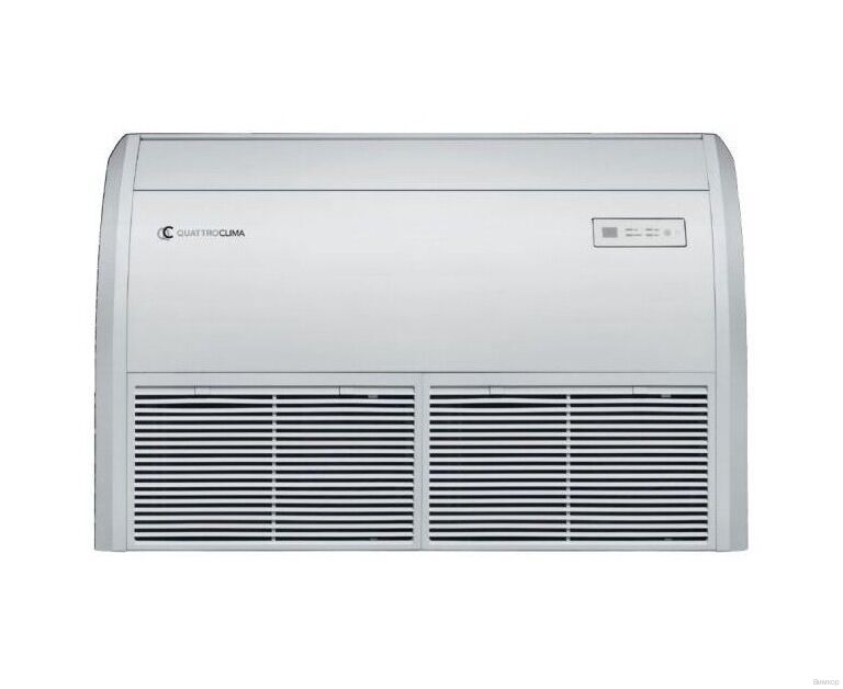 - Важная деталь: Сплит-система Quattroclima QV-I18FF1/QN-I18UF напольно-потолочного типа незаменима в тех случаях, когда требуется установка на полу, вдоль стены или под потолком, а скрытая установка кассетного блока невозможна из-за отсутствия в помещении подвесного потолка или потому, что оно слишком вытянуто по форме.
