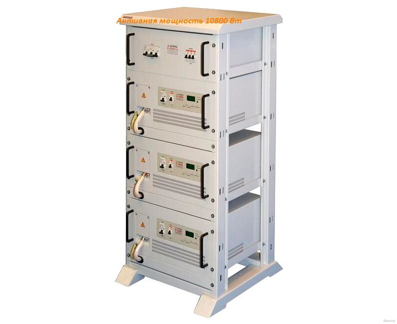 - Значимый факт: Конструктивные в составе стабилизатора напряжения три однофазных силовых блока, блок коммутации, двухрамная 19" стойка; тороидальный силовой автотрансформатор; двойная защита нагрузки от аварийно-высокого входного напряжения; автоматическое отключение автотрансформатора от сети при увеличении входного напряжения >300 В с последующим автоматическим включением после снижения напряжения до безопасного уровня; принудительное охлаждение (встроенный программно-управляемый вентилятор); дискретное (ступенчатое) регулирование выходного напряжения; широкий диапазон входного напряжения; высокая перегрузочная способность; тиристорные силовые ключи; высокое быстродействие; электронная защита от короткого замыкания и перегрузки с автоматическим отключением; возможность работы стабилизатора на заявленную мощность нагрузки во всём предельном диапазоне входного напряжения; автоматическое отключение нагрузки при выходе входного или выходного напряжения за установленный предельный диапазон с последующим автоматическим включением после возвращения напряжения в рамки предельного диапазона; ручной сервисный байпас (как в силовом блоке, так и в блоке коммутации); входной и выходной фильтр высокочастотных сетевых помех; светодиодный цифровой индикатор, отображающий основные параметры (входное и выходное напряжение, мощность нагрузки), светодиодная индикация режимов работы; клеммные колодки для подключения сети и нагрузки; комплект роликов (опция).