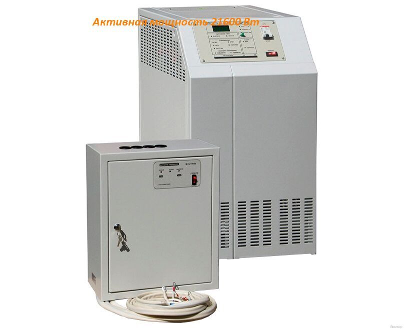 - Инженерное решение: Конструктивные в составе стабилизатора напряжения силовой блок, блок байпаса и комплект кабеля; тороидальный силовой автотрансформатор; естественное охлаждение (без вентилятора); двойная защита нагрузки от аварийно-высокого входного напряжения; автоматическое отключение автотрансформатора от сети при увеличении входного напряжения >300 В с последующим автоматическим включением после снижения напряжения до безопасного уровня; дискретное (ступенчатое) регулирование выходного напряжения; высокая перегрузочная способность; релейные силовые ключи; высокое быстродействие; электронная защита от перегрева, короткого замыкания и перегрузки с автоматическим отключением; возможность работы стабилизатора на заявленную мощность нагрузки во всём предельном диапазоне входного напряжения; автоматическое отключение нагрузки при выходе входного или выходного напряжения за установленный предельный диапазон с последующим автоматическим включением после возвращения напряжения в рамки предельного диапазона; ручной сервисный байпас; входной и выходной фильтр высокочастотных сетевых помех; светодиодный цифровой индикатор, отображающий основные параметры (входное и выходное напряжение, мощность нагрузки), светодиодная индикация режимов работы; клеммные колодки для подключения сети и нагрузки.