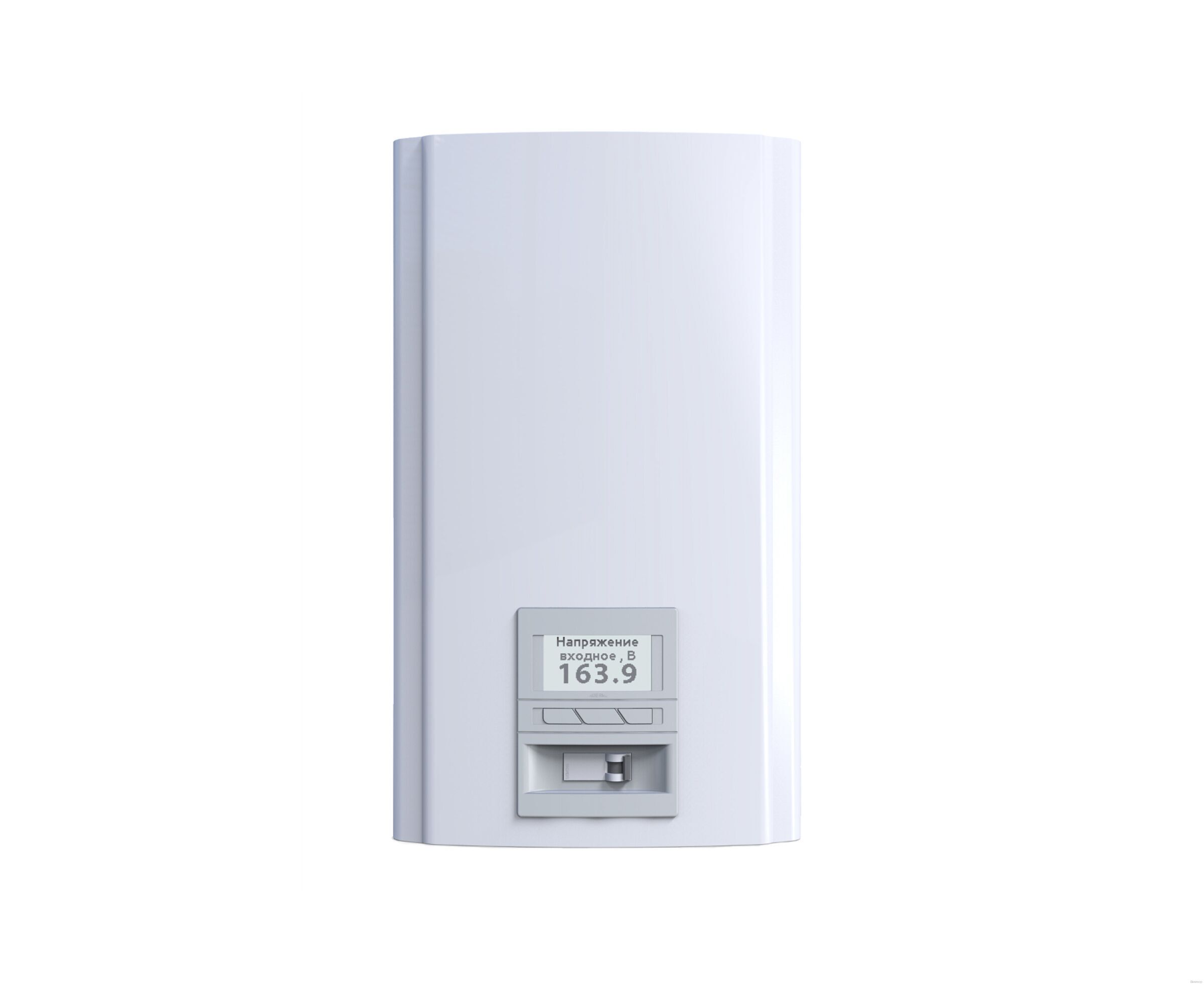- Конструктивный плюс: К особенностям данного стабилизатора можно отнести информативный LCD-экран, память событий, высочайшую точность стабилизации, построение графиков напряжения и загрузки, интерфейс на трех языках, наличие электронного транзита (байпас), бесшумную работу за счет использования в качестве силовых ключей симисторов (тиристоров).