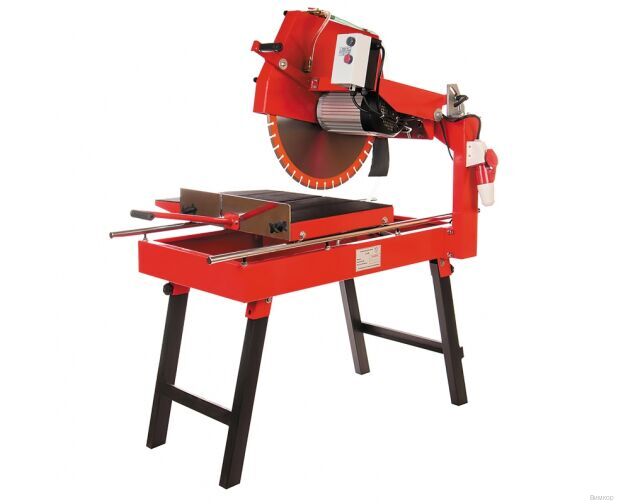 Камнерезный станок DIAM SKH-600/4 - маятниковый станок для резки бетонных блоков, кирпича, огнеупоров, гранита, брусчатки и др. Максимальная длина пропила — 600 мм, глубина реза — 210 мм. Двигатель мощностью 4 кВт оснащен защитой от перегрева. На станок устанавливается алмазный диск 600 мм. Помпа для рециркуляции воды уже входит в комплект. Глубина реза при необходимости регулируется поднятием и опусканием режущей головки. Резка производится за счет перемещения каретки по направляющим. Станок удобно перемещать и транспортировать благодаря складывающимся ножкам. Габариты и вес станка обеспечивают устойчивую и стабильную работу с большими заготовками.