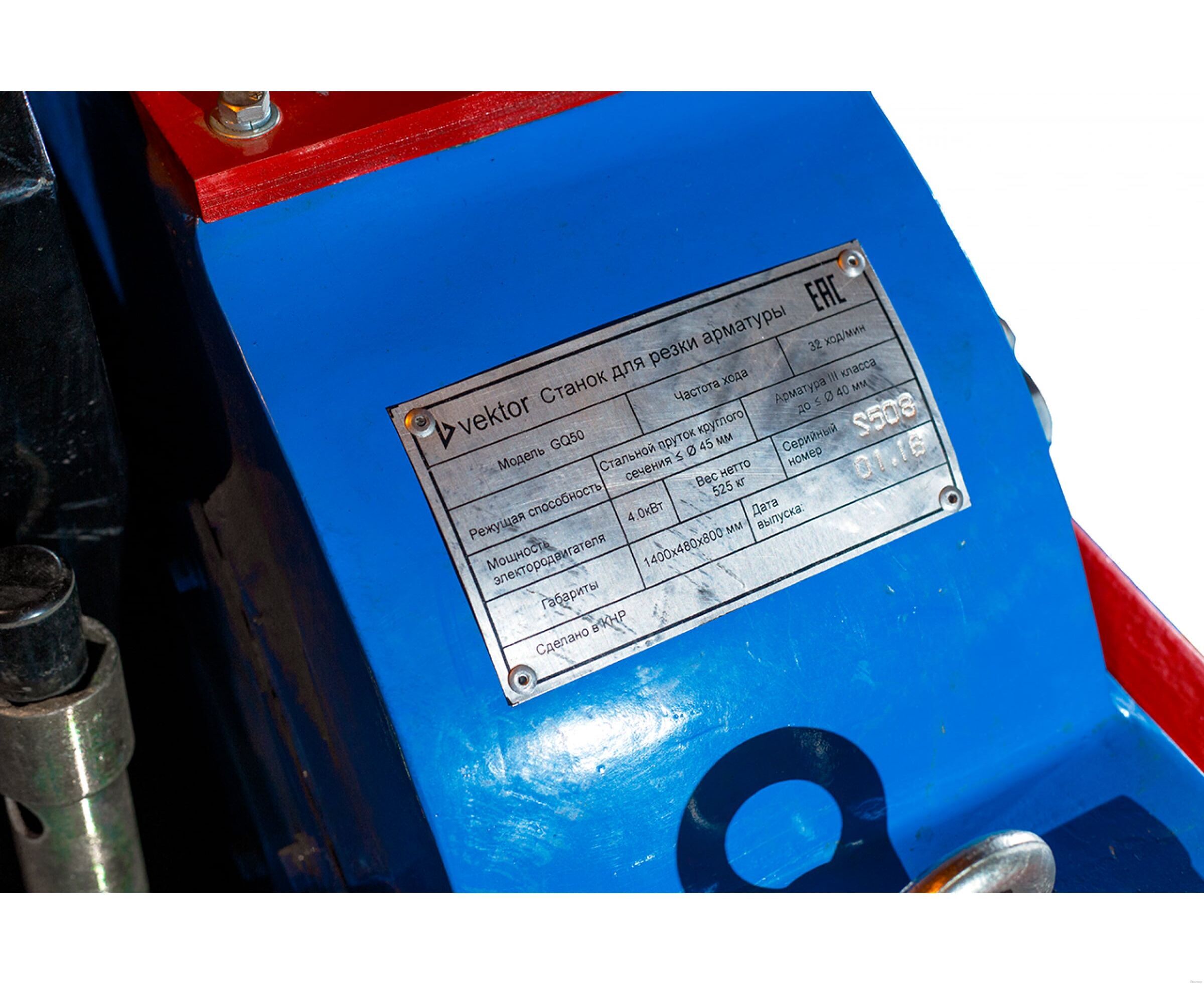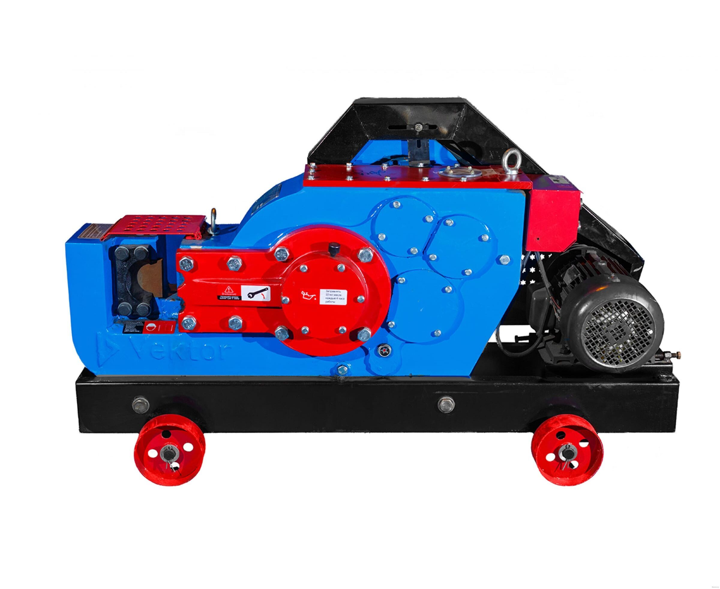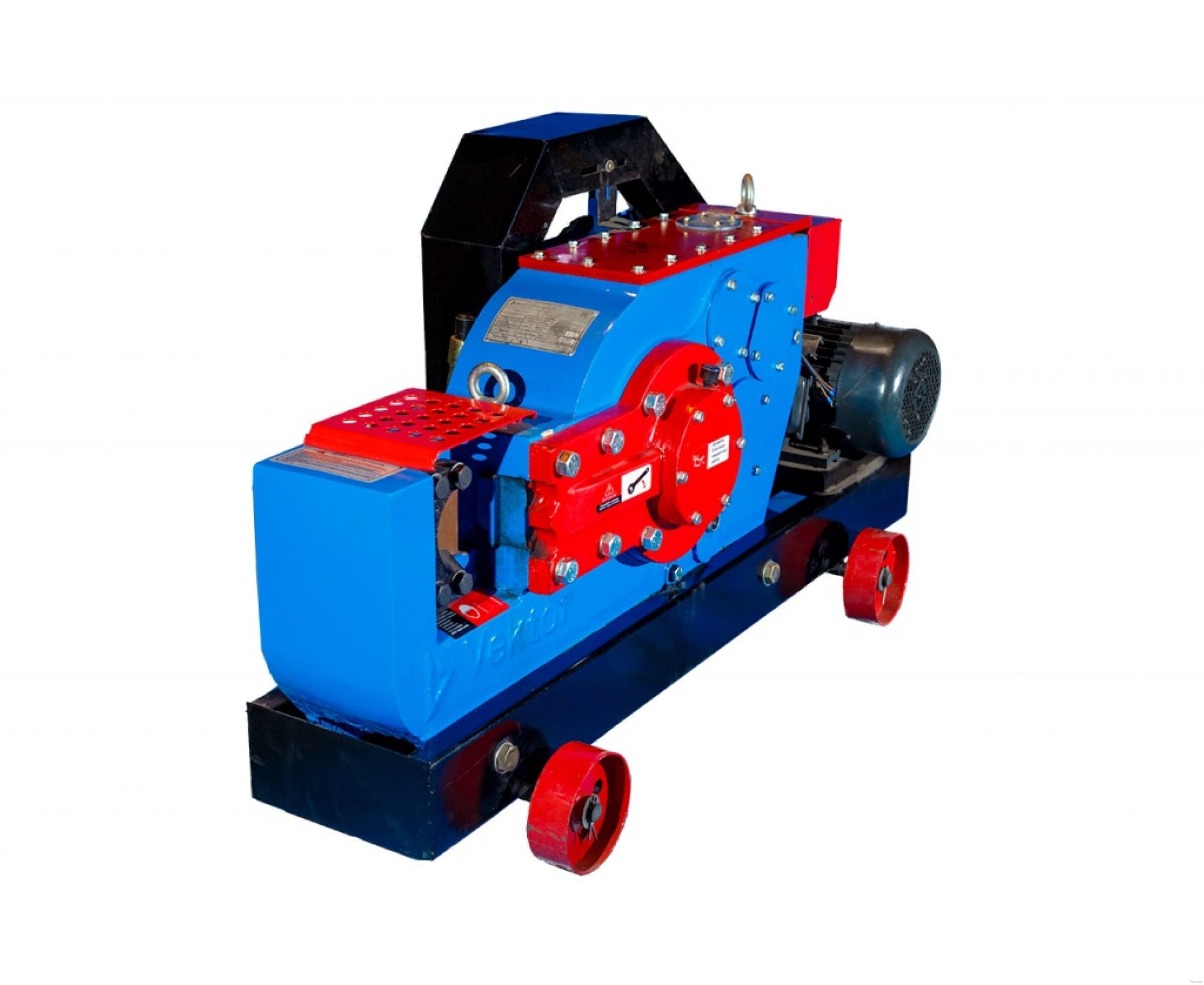 Станок для резки арматуры Vektor GQ50 с электродвигателем мощностью 4 кВт применяется для высокоточной обработки стальных прутьев арматуры с винтовой нарезкой или без нее. Литой корпус из высокопрочного чугуна с добавлением графита придаёт свойство пластичности и прочности. Максимальный диаметр арматурной стали составляет 40 мм. Большой приводной шкиф, выполняющий роль маховика помогает сберечь приводную энергию и снизить нагрузку на электродвигатель. За счёт использования шестерни с косыми зубами, уровень шума в работе не превышает 85 дБ.