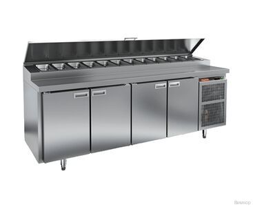Стол охлаждаемый для пиццы HICOLD PZ1-1111GN (1/3) с четырьмя распашными дверцами. Модель полностью облицована нержавеющей сталью марки AISI-304. В верхней части стола устанавливаются гастроемкости 1/3 GN с максимальной глубиной 150мм. Глубина рабочей части столешницы 324 мм. Полиуретановая изоляция надежно защищает внутренний объем от холодопотерь. Внутреннее пространство принудительно подвергается вентиляции. Разморозка испарителя включается в автоматическом режиме. Предусмотрены доводчики дверей. Холодильный стол укомплектован регулируемыми по высоте ножками. Допускается нагрузка на полки до 50 кг. Холодильный агрегат находится в отдельном отсеке. Отсек холодильного агрегата закрыт съемной панелью, что облегчает доступ к агрегату при сервисном обслуживании. Стол охлаждаемый для пиццы HICOLD PZ1-1111GN изготовлен в климатическом исполнении, которое гарантирует возможность эксплуатации при температуре окружающей среды до +43 С цельнозаливной корпус стола обеспечивает высокую герметичность и жесткость конструкции.