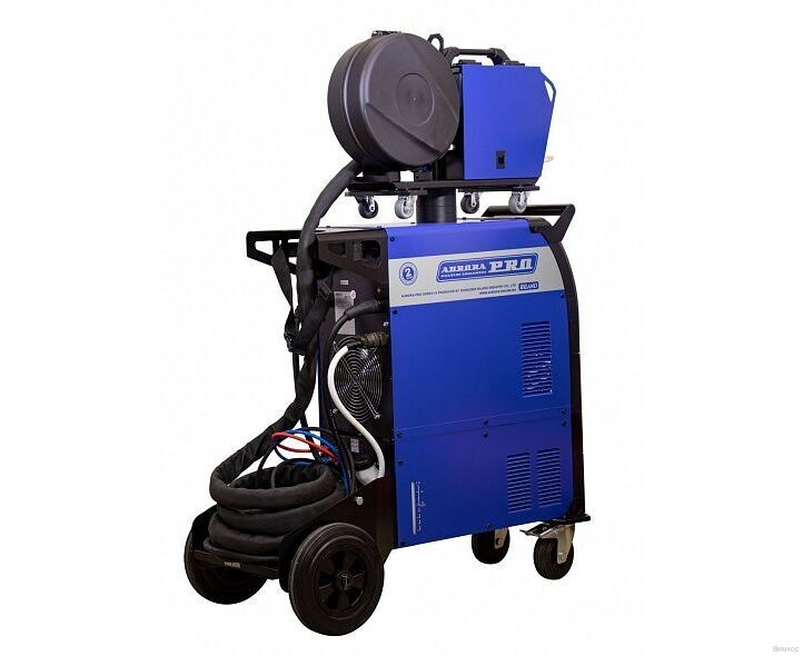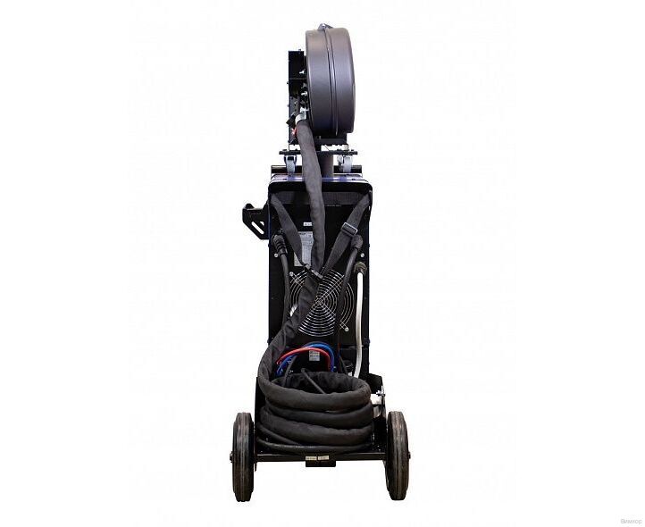 - Конструктивное исполнение: Универсальность MIG-MAG/MMA; простая и наглядная панель управления; высокая продолжительность работ благодаря водяному охлаждению; мощный 4-х роликовый подающий механизм; режим работы горелки 2Т/4Т; заварка кратера; розетка подключения подогревателя редуктора газового баллона 36В; 2 цифровых дисплея на подающем механизме для отображения настроек и контроля сварочного процесса; выбор специального режима для работы с порошковой/цельнометаллической проволокой; большие резиновые колёса, низкая площадка под баллон и ручки для удобства работы и мобильности аппарата; транспортировочные кольца (рымы) для перемещения краном; силовой блок на базе инверторной технологии IGBT нового поколения.