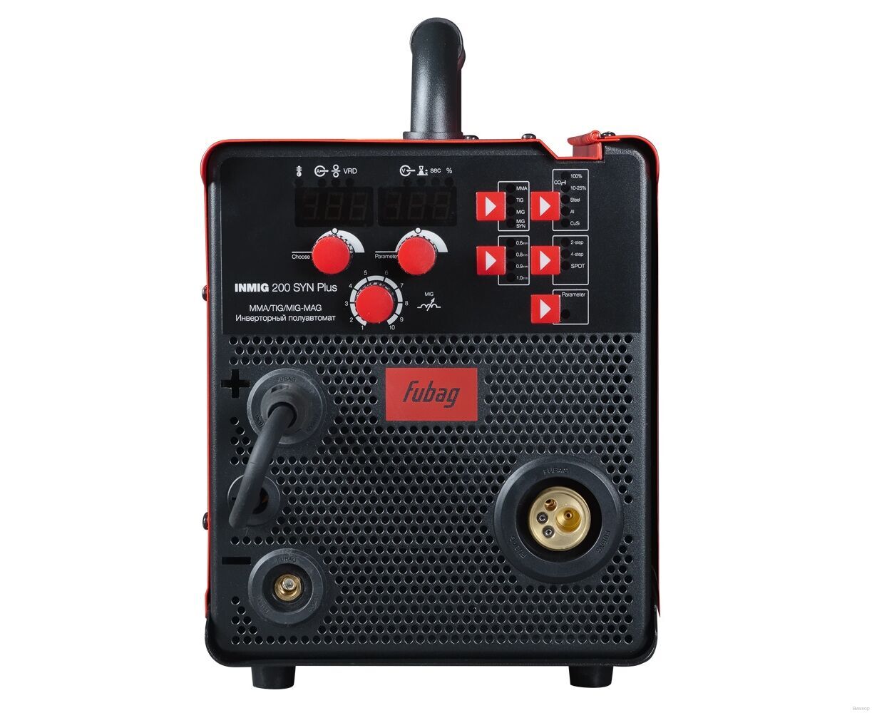 - Инженерное решение: Сварочный полуавтомат Fubag INMIG 200 SYN PLUS с синергетическим управлением и возможностью выбора: материала, типа защитного газа, диаметра сварочной проволоки, режима работы горелки.