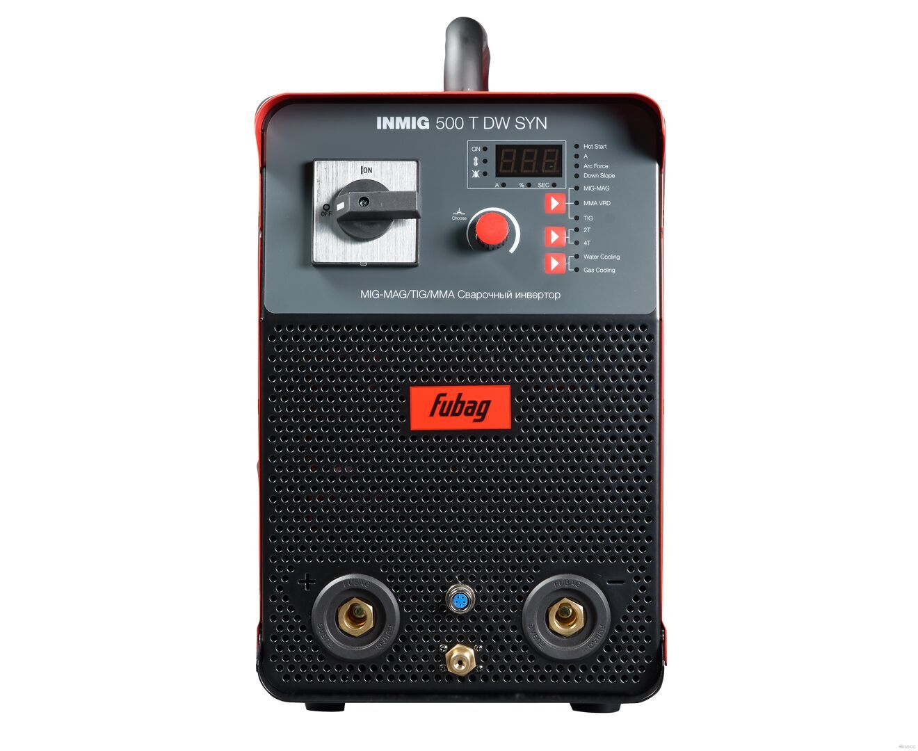 - Конструктивный плюс: Промышленный трехфазный инверторный сварочный полуавтомат Fubag INMIG 500 T DW SYN оснащен модулем охлаждения специальной горелки и выносным 4-х роликовым механизмом подачи проволоки DRIVE INMIG для продолжительных сварочных работ в режиме сварки MIG-MAG.