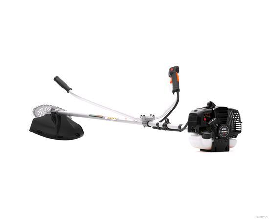 Триммер CAIMAN WX36 - профессиональный бензиновый триммер-кусторез. Он способен срезать траву, в том числе высокую и плотную, а также кустарники и небольшие деревья. Для этого в комплекте есть и триммерная насадка, и режущий диск с победитовыми зубцами. При своих способностях инструмент весит совсем не много (7,2 кг) – легче, чем аналоги. Двухтактный двигатель BC35HT Professional (Япония) обеспечивает высокую мощность и эффективность сгорания топлива, а также сниженный его расход. Характеризуется легким пуском, надежностью и низким уровнем шума. Все эти качества достигнуты благодаря применению инновационных технологий. Мотор позволяет использовать алкилатный и схожий по типу бензин, - это не приведет к перегреву. Цельнометаллический приводной вал способен выдерживать высокие нагрузки. По всей своей длине он поддерживается бронзовыми втулками в резиновых амортизаторах. Таким образом, снижается вибрация и сокращается износ. Легкая и прочная штанга обеспечивает малый вес косы и исключает коррозию. Универсальная рукоятка управления позволяет увеличивать или уменьшать обороты, исключает случайное нажатие на курок газа, в экстренных случаях позволяет моментально заглушить двигатель. При своих небольших размерах и весе редуктор характеризуется высочайшей износостойкостью: коническая пара вращается в 4 подшипниках качения, что позволяет практически исключить осевое биение, а значит, увеличить ресурс и надежность механизма. Профессиональная эргономичная подвеска в комплекте. Трехточечная ременная оснастка оптимальным образом распределяет вес косы, снижая нагрузку на руки и облегчая процесс управления и маневрирования. Быстросъемное крепление дает возможность быстро отсоединить косу в случае экстренной необходимости одним движением руки. В комплекте триммерная насадка с леской диаметром 2,4 мм и стальной диск для травы диаметром 255 мм с победитовыми зубьями.