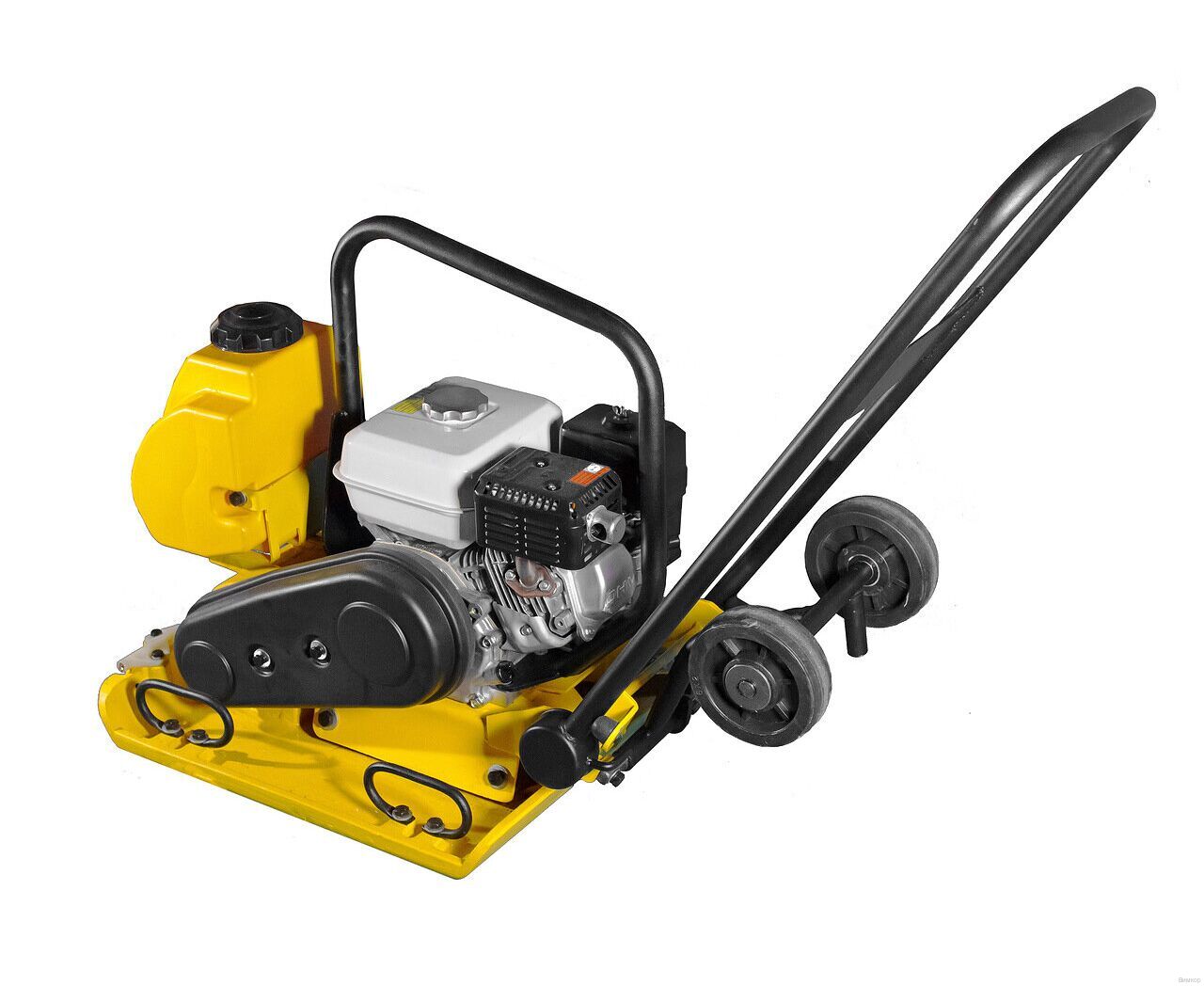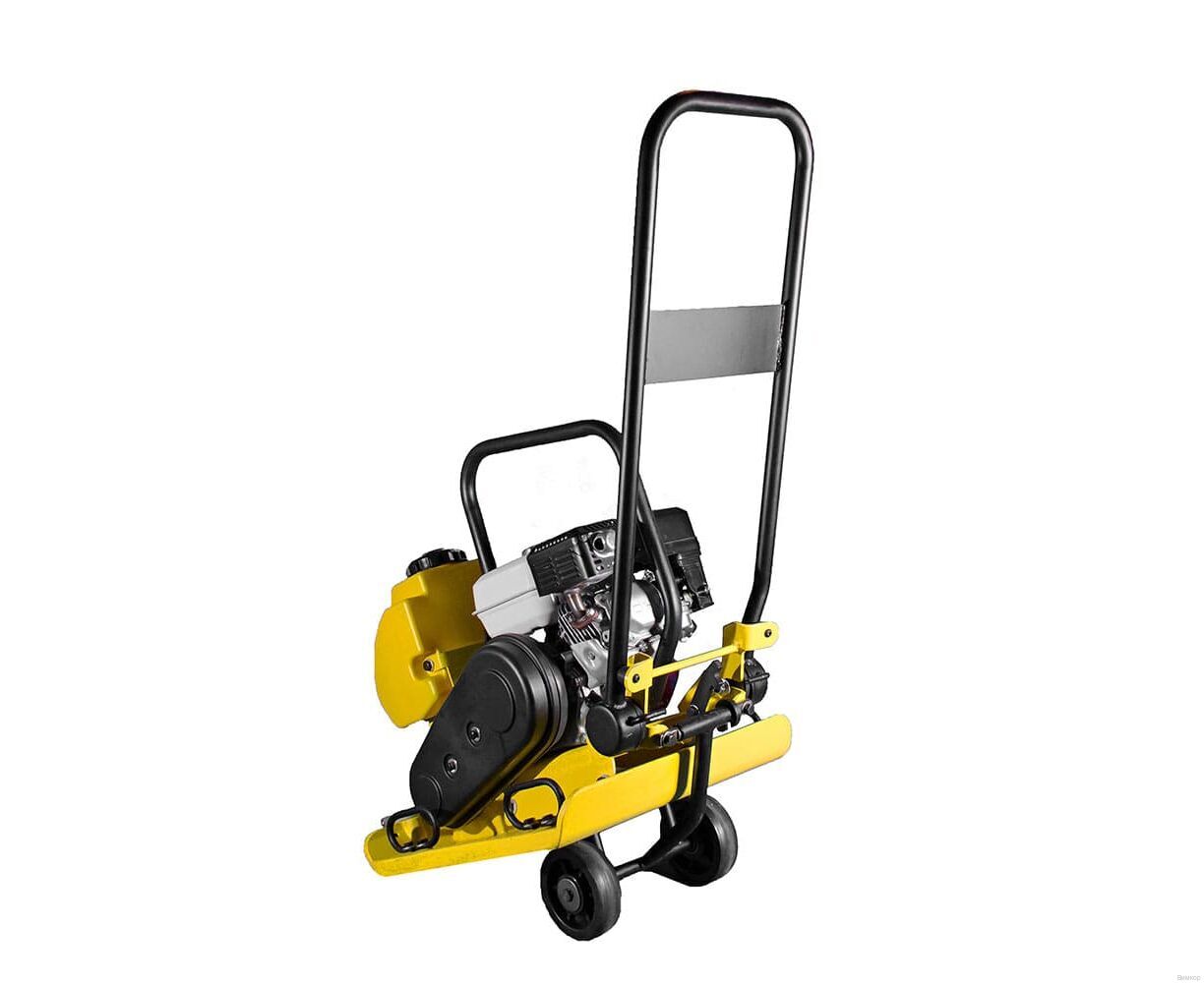 - Конструктивное исполнение: Монолитное соединение виброузла c чугунной подошвой увеличивает срок службы вибромеханизма; монолитное соединение виброузла уменьшает вибрационные потери; за счет более тяжёлой массы эксцентрика (3,54 кг) увеличивается мощность уплотнения; утолщенная подошва - 12 мм; наличие ручек и колес для перемещения.