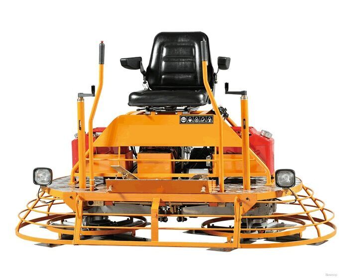 KOMAN MRT73 - профессиональная двухроторная затирочная машина для обработки бетонных поверхностей. Строительный вертолет применяют для создания качественных чистовых полов или стоянок залитых бетонным составом. Два модуля позволяют работать с режиме шлифования дисками или лопастями. Технология шлифования цементной поверхности на стадии набора прочности, когда бетон эффективно поддается заглаживающему воздействию. Обработку начинают, когда состав не проминается под массой машины. Модель укомплектована мотором Honda GX690 объемом 688 см3, мощностью 24 л.с. Это эффективный двухцилиндровый бензиновый двигатель с максимальным крутящим моментом 48.3 Нм при 2500 об/мин. Частота вращения роторов находится в диапазоне 130-150 об/мин. Это профессиональный показатель, обеспечивающий хороший результат чистового шлифования покрытий. При необходимости доступна функция регулировки угла наклона лезвий. Это актуально для адаптации техники под различные производственные ситуации - работа с бетонными заливками на различной стадии затвердевания. Управление машиной производит оператор, располагаясь на специальном сидении. Две рукояти служат для создания управляющих комбинаций, которые двигают машину в нужном направлении. Запуск осуществляется через электрический стартер, расположенный по левую сторону от сидения. Предусмотрены фонари для подсветки поверхности, с целью выявления неровностей и проработки локальных областей. Вертолет дает возможность создать ровные качественные полы на больших площадях за определенное время. Высокая производительность важное достоинство представленной модификации. Запас мощности ДВС способствует повышению продуктивности работы агрегата. Технология востребована при устройстве полов на крупных складах, ангарах, заводах, в цехах, в торговых центрах, вокзалах, аэропортах. Механизация применяется в дорожном и мостовом строительстве. По соотношению цена, качество и эффективность это достаточно сбалансированное оборудование.