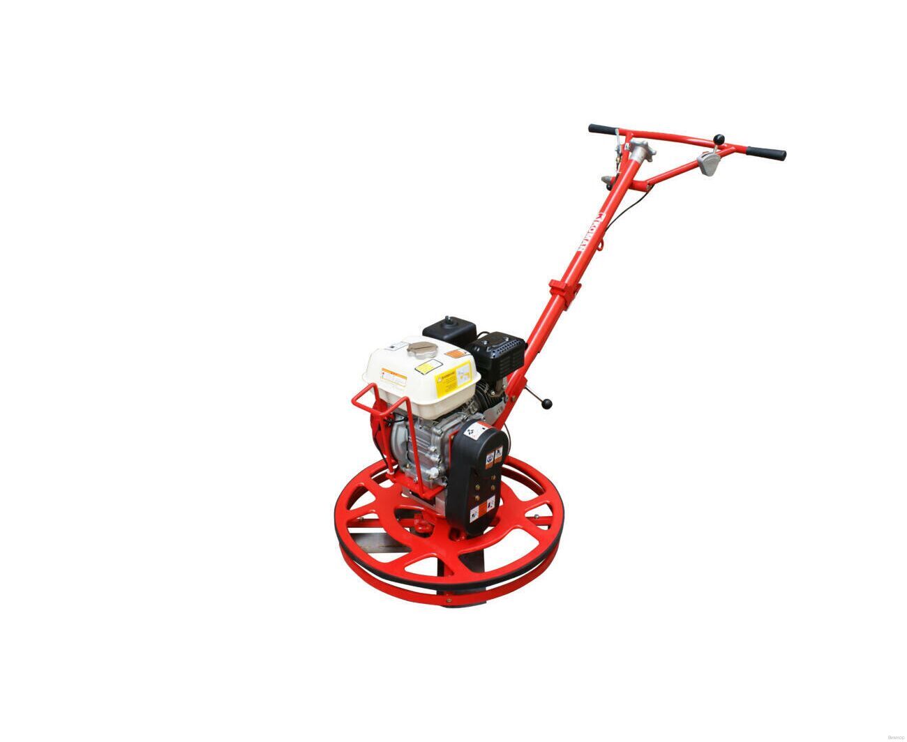 KOMAN MT24-2 - кромочная компактная машина для заглаживания бетона. Размер рабочего диска 610 мм (приобретается дополнительно). Оборудование разработано для создания гладких поверхностей, методом механизированного затирания. Технологию используют на этапах частичного набора прочности, когда несущая способность заливки позволяет передвигаться оператору по обрабатываемой поверхности. В качестве силового агрегата установлен бензиновый мотор Loncin G200F объемом 200 см3. Тяговое усилие на 6.5 лошадиные силы, способствует эффективной передачи крутящего момента на редукторный блок. Передача вращения осуществляется через ремень. Мотор поставляется в сухом виде - залейте масло в картер согласно рекомендациям в руководстве. Редуктор преобразует скорость и выдает частоту вращения рабочей оснастки в диапазоне 50-100 об/мин. Этого достаточно для качественного заглаживания лопастями или диском. Представленная модификация удобна при работах в узких проемах и углах. Средний уровень производительности компенсируется отличной маневренностью и комфортом в управлении. Востребованная единица в профессиональной строительной практике.